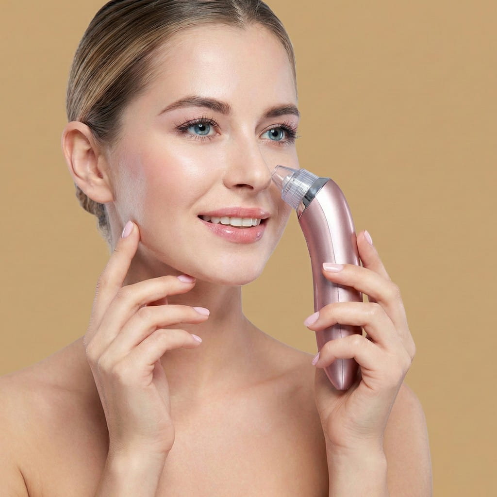 Dispositivo de succión al vacío que extrae impurezas profundas y estimula la microcirculación, dejando la piel limpia, tersa y libre de obstrucciones visibles al instante.