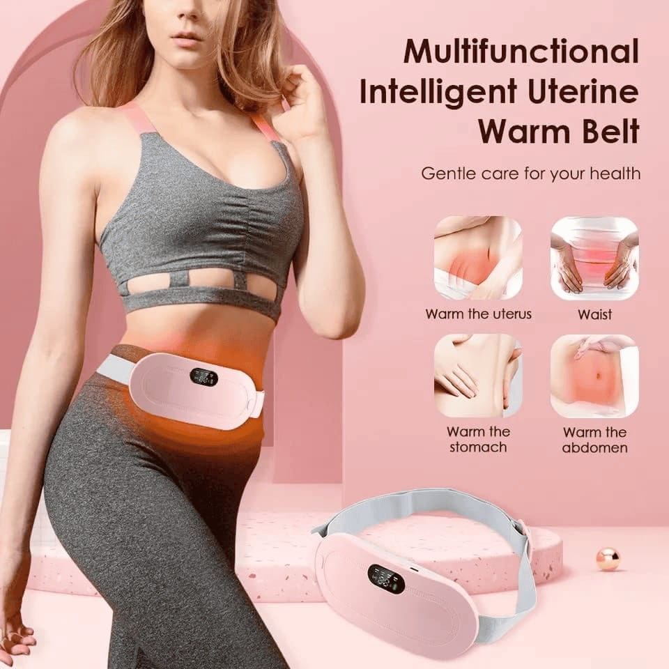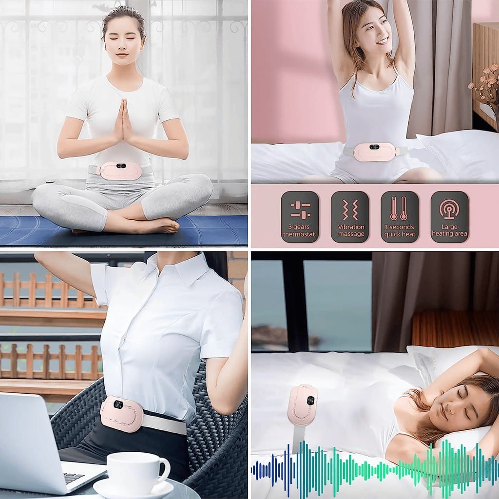 Cinturón inteligente de calor y masaje que alivia los cólicos menstruales y la tensión lumbar para un bienestar inmediato.