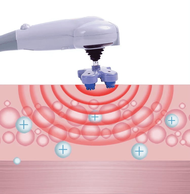 Dispositivo de masaje corporal ergonómico que disuelve la tensión muscular profunda y reactiva la circulación mediante calor infrarrojo y percusión.