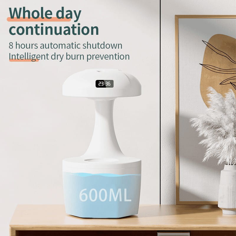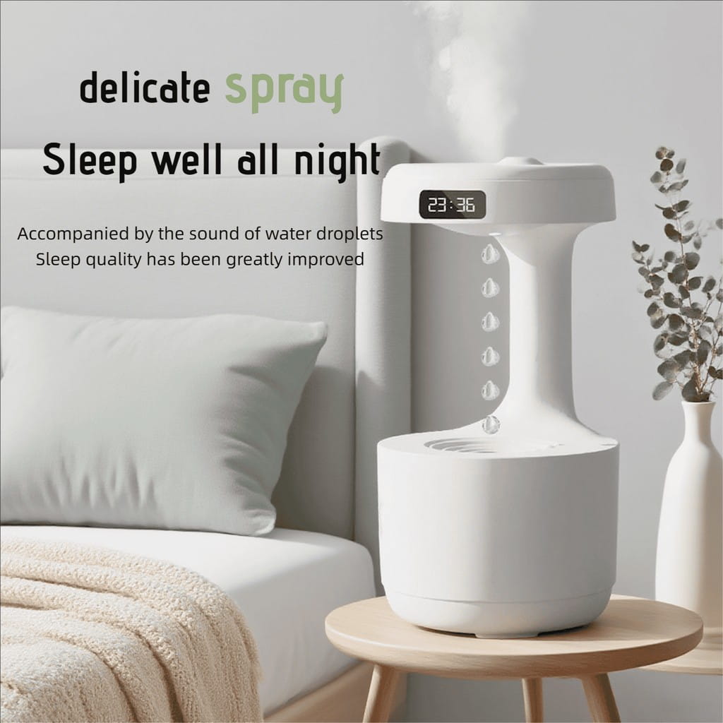 Humidificador de aire con tecnología óptica de antigravedad que transforma tu ambiente seco en un santuario visual y respiratorio de calma absoluta.