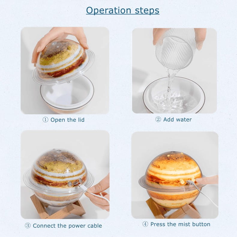 Humidificador y lámpara 3 en 1 con diseño realista de Júpiter que hidrata el ambiente y crea una atmósfera visual relajante.