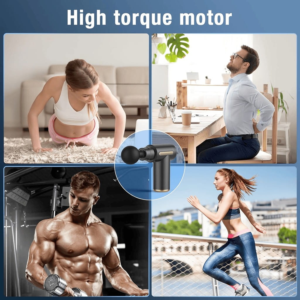 Dispositivo de percusión muscular compacto que disuelve la tensión profunda y acelera tu recuperación física inmediata.