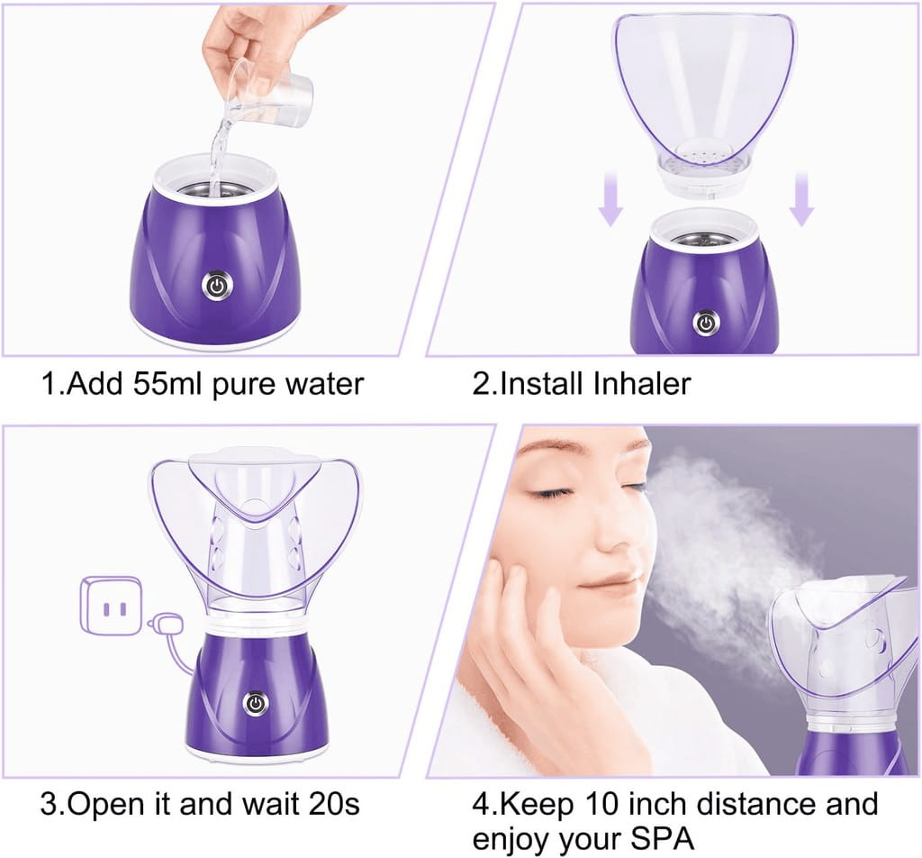Un dispositivo de sauna facial que abre los poros y purifica la piel para una experiencia de spa revitalizante en casa.